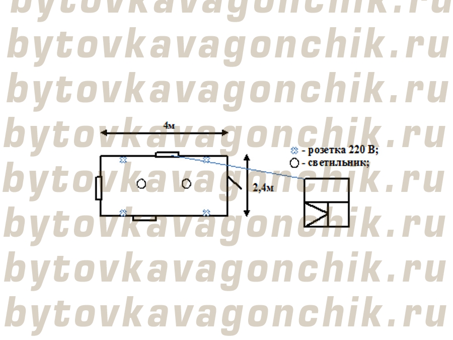 - электрика в кабель-канале: 3-х жильный провод, светильник-2шт., выключатель-1шт., розетка -4шт., автомат на розетки, автомат на освещение.